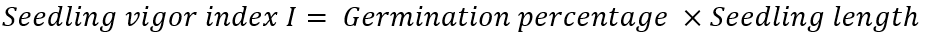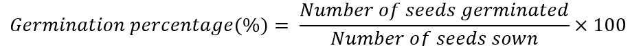 Data on germination and seedling growth parameters were recorded during the seedling stage. Germination percentage was calculated using the formula: