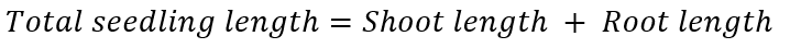 Total seedling length was calculated by summing the shoot and root lengths for each seedling: