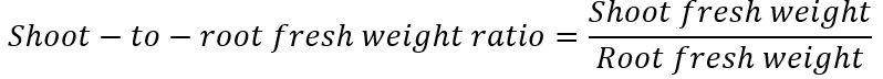 The shoot-to-root fresh weight ratio was computed using the formula: