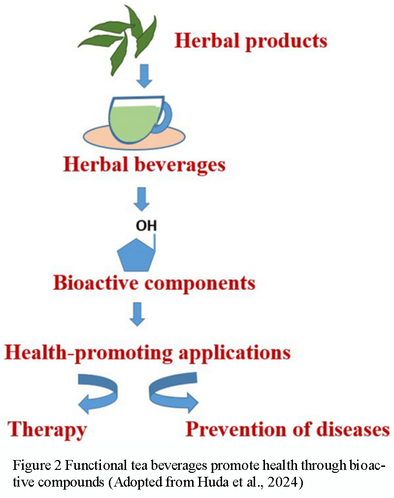 ![]() Figure 2 Functional tea beverages promote health through bioactive compounds (Adopted from Huda et al., 2024) |